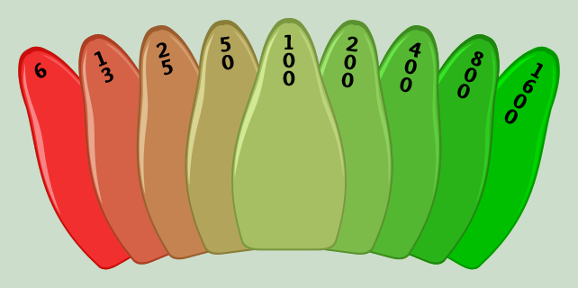 Petals start at a normal shade and are worth 100 points. Petals also earn bonuses (green) and penalties (red), which also affect their point values: