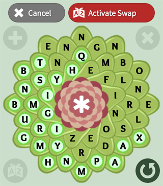 After choosing to use a swap, you select the letters you'd like to replace (or tap the asterisk in the center to select or deselect all letters) and then activate it. Your swap isn't considered used until it's activated.
